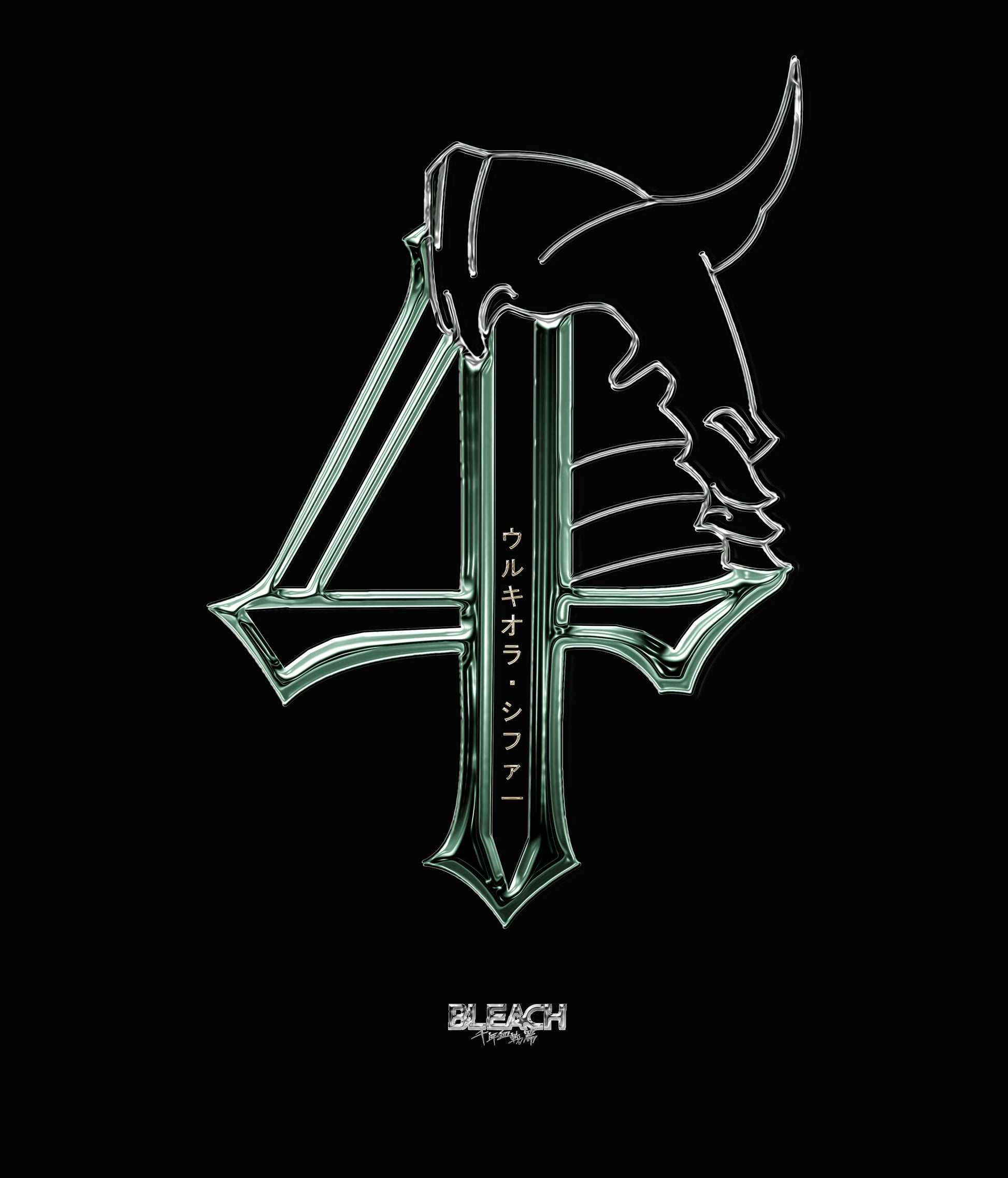 A sleek chrome #4 with Ulquiorra's bone helmet resting on top.